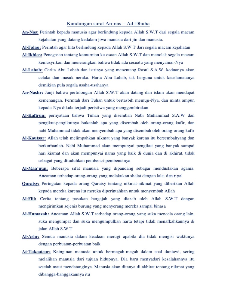 Orang yang dimaksud adalah khadijah dan abu talib, pamannya. Pada ayat ini allah menghibur nabi muhammad dalam memperjuangkan agama islam dengan segala cobaan yang diterima karena sebagai manusia beliau juga mengalami kesedihan dan kepedihan. Surah ini diambil dari kata alam nasrah yang terdapat pada ayat pertama, yang artinya melapangkan. Memberikan kelapangan (islam) kepada nabi muhammad s.a.w. Surah ini terdiri atas 8 ayat dan termasuk golongan surah makkiyah serta diturunkan sesudah surah ad dhuha. (juga umumnya kepada seluruh manusia). Berikut adalah kandungan surat al insyirah: Pai kelas / semester : Perjuangan beliau menegakkan ajaran islam senantiasa menghadapi rintangan yang berat. Mulai dari kenikmatan allah yang dikaruniakan kepada rasulullah, janji akan kemudahan, menghilangkan bencana, dan kabar gembira atas kemenangan yang sudah dekat. Metode menghafal juz'amma oleh tim genta hidayah, al insyirah memiliki beberapa pokok isi kandungan. Rencana pelaksanaan pembelajaran (rpp) satuan pendidikan : Isi kandungan surat al insyirah berdasarkan tiap ayatnya.